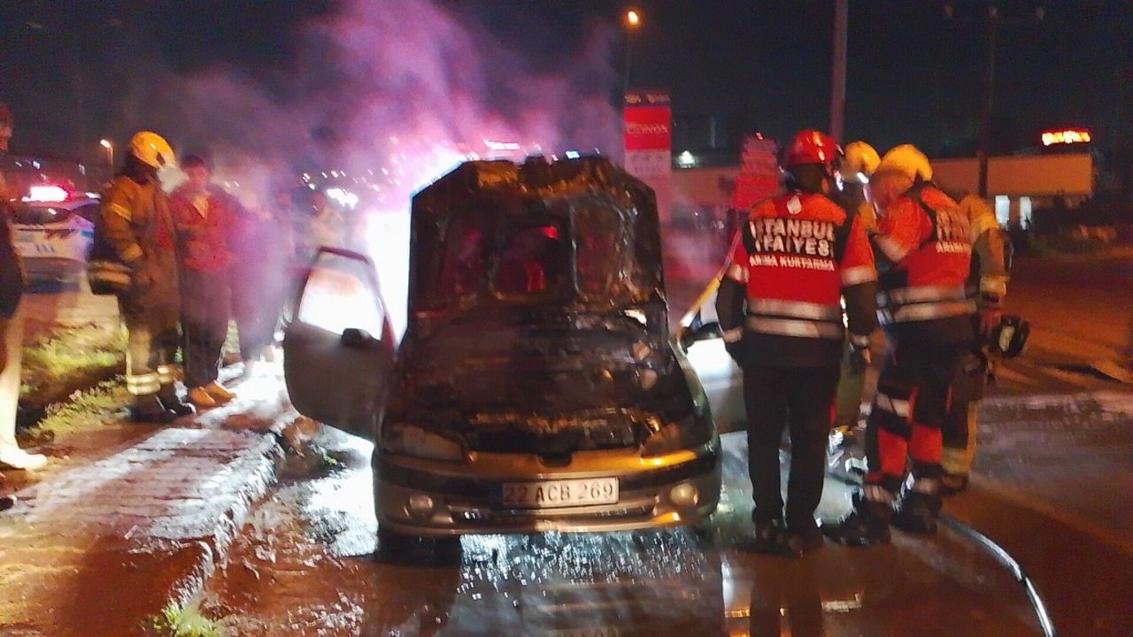 Silivri’de seyir halindeki otomobil alev alev yandı